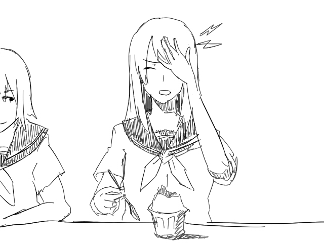 夏アニメはトータルイクリプスとじょしらくとソードアートオンラインを見ています。ニコニコで。 もはやHDレコーダーは半年ほど前からパンパンになって消化する気になれません。 スクライドオルタレイションQUAN。カットされて残念なシーンも多々ありましたが、その分追加カットや エピローグが追加されてて楽しかったです。 ゲームはシュタゲの比翼連理のだーりん、第2次スパロボZ、ロボティクスノーツなど積みゲーが増えてる状態です。 絵はカキ氷頭痛です。夏っぽい絵を描こうとするとなぜか真っ先にカキ氷頭痛が浮かびます。 そういえばサークルに入った最初の夏の絵はカキ氷頭痛だった気がする。